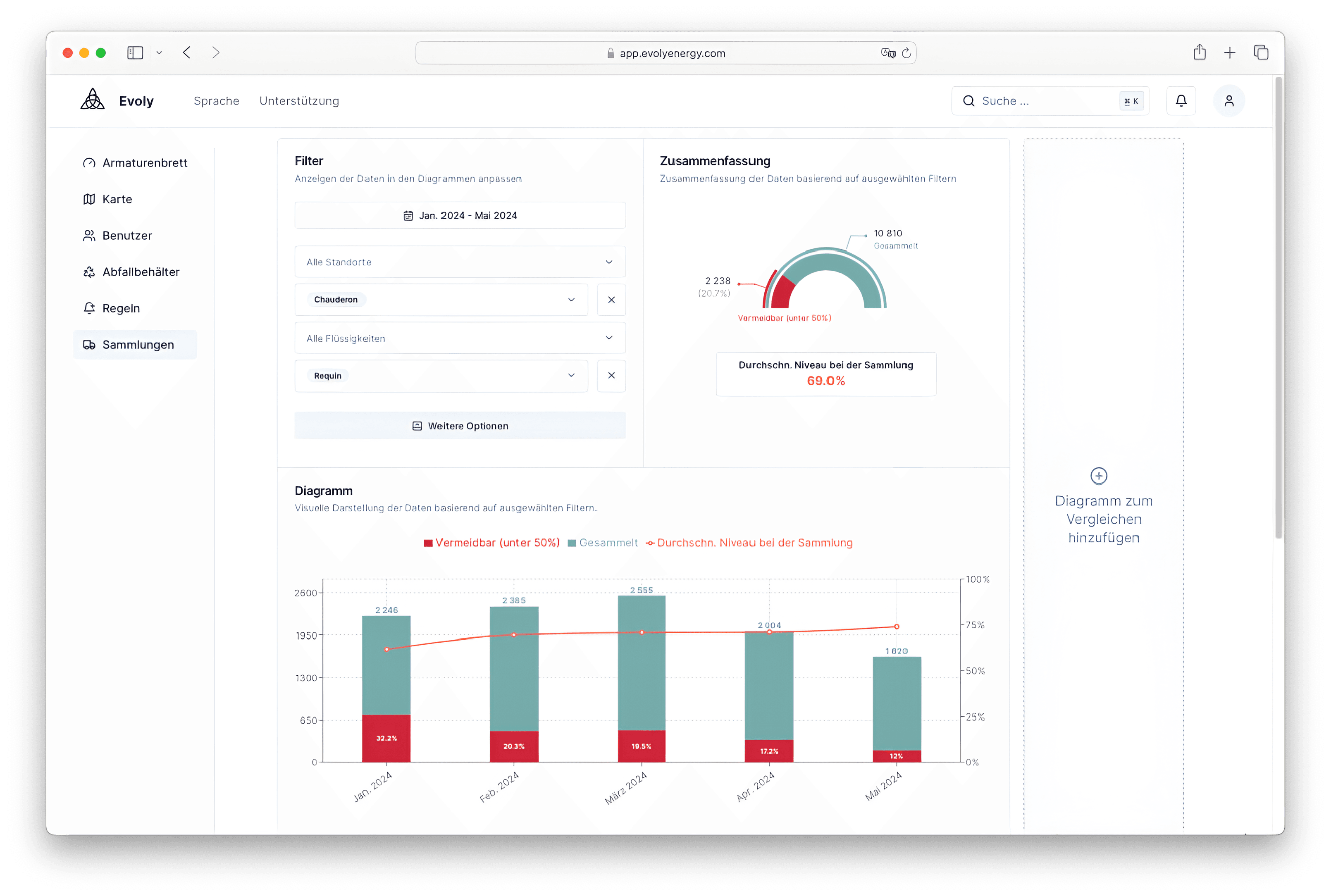 Auf jeden Fall! Evoly bietet detaillierte Analyse- und Berichtswerkzeuge, mit denen Sie die Leistung Ihrer Abfallsammeloperationen überwachen und verbessern können.